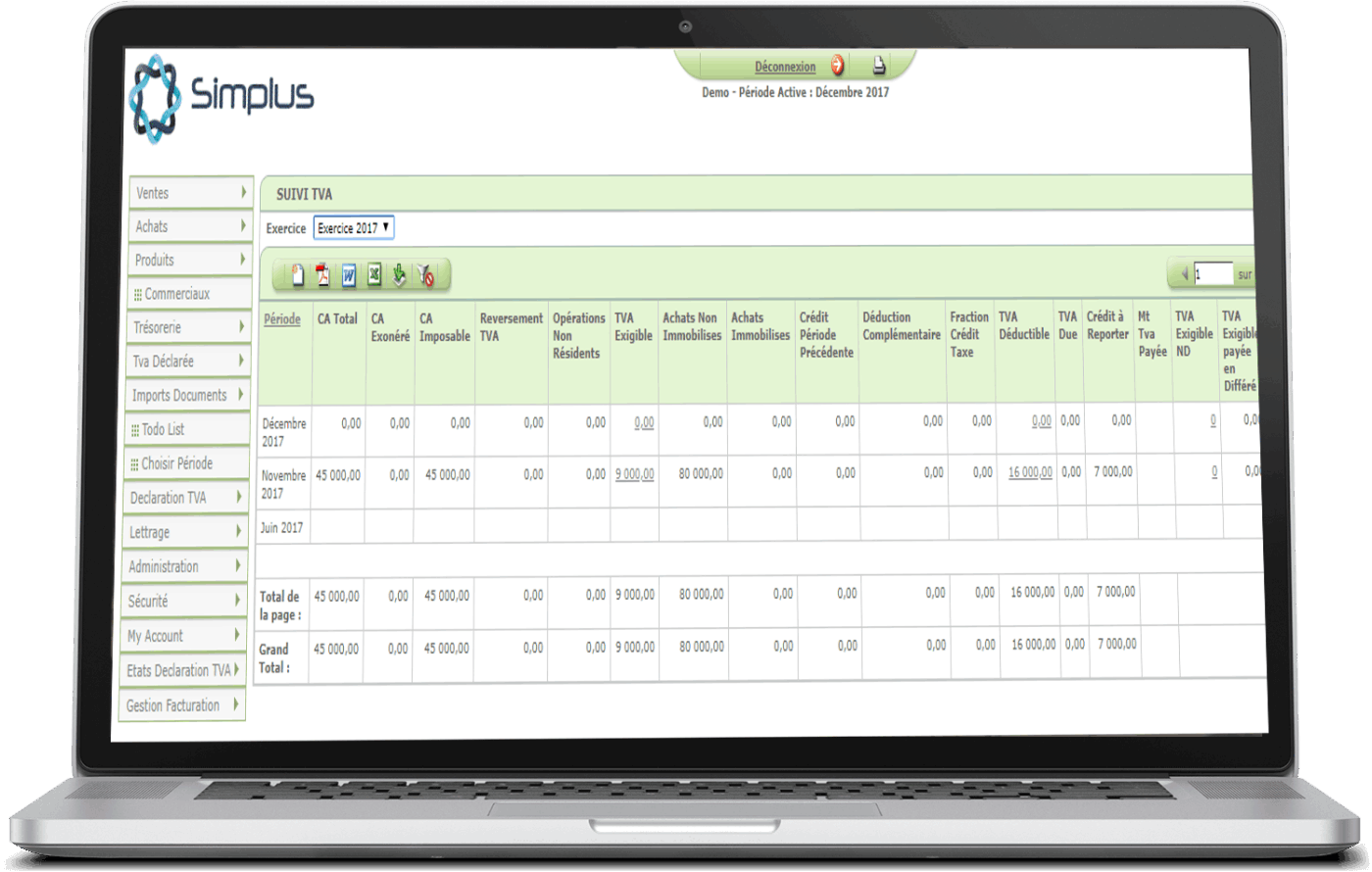 ▪ Détail TVA déductible et TVA exégible...